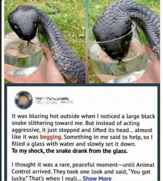 Trusting a quiet feeling within, Jake poured a little water into a glass and placed it nearby. To his surprise, the snake moved closer and began to drink, its movements calm and deliberate. There was no fear between them — only stillness, a silent moment of mutual understanding. For that brief time, the boundaries between man and nature seemed to fade, replaced by a wordless exchange of respect and compassion.