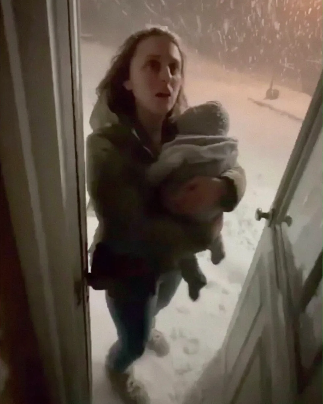 The storm that night seemed endless — snow piling against the windows, wind howling through the trees, the world outside swallowed in white. Alone in my small Wisconsin cottage, I was settling in with a cup of tea when a sudden, frantic knock broke the silence. Standing on the porch was a young woman clutching a baby, both trembling from the cold. Her car had broken down miles from town, and she had nowhere to go. Without hesitation, I brought them inside, wrapped them in blankets, and set them by the fire. Her name was Penny, and the baby, Ava, was barely a few months old. She said little, only that she needed a place to rest until morning. When she left at dawn, she thanked me with tears in her eyes, promising she would never forget the kindness of that night.