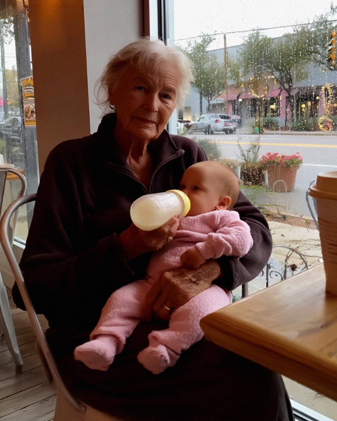 When the officers arrived, everything changed. Instead of treating us harshly, they approached with warmth. One officer gently held my granddaughter, calmed her, and helped feed her. They sat with us, shared a meal, and offered the kindness that had been missing moments earlier. A photo taken during that time captured not just the scene, but the care shown to a grandmother and child simply trying to find shelter.