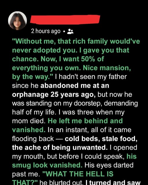 Posted on September 13, 2025 By admin No Comments on I Was Adopted 25 Years Ago – Last Month My Bio Father Knocked on My Door Demanding 50% of Everything I Own
