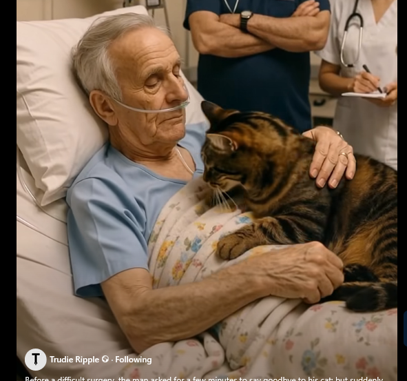 It was a quiet morning in the hospital as an elderly man prepared for a surgery that could shape the next chapter of his life. Frail but hopeful, he leaned on the presence of his loyal cat, who had accompanied him through every stage of treatment. She wasn’t just a pet—she was his steady companion, offering comfort and calm to both her owner and the staff who had grown fond of their bond. Her gentle purring had become as familiar to the ward as the sound of the monitors.
