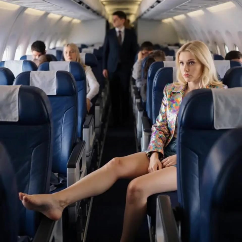 “Excuse me, miss,” the flight attendant said gently, leaning down to be at eye level with the woman. “Could you please move your foot out of the aisle? It’s important to keep the walkway clear for safety reasons.”