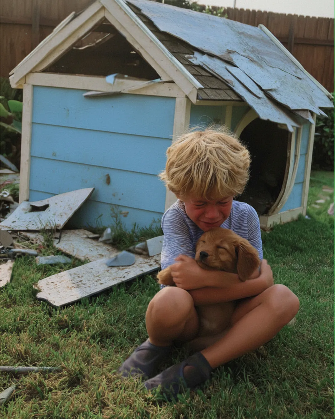 A few days later, Mason returned from school in tears. Buddy’s house was destroyed — shattered wood, torn blankets, and an empty yard. We found the poor puppy shaking behind the fence. My first instinct was anger, but when I saw my son’s face, I knew I had to show him something stronger than resentment. “Kindness isn’t weakness,” I told him. “Some people just forget what it feels like.” That night, we rebuilt Buddy’s home from scratch, painting it brighter than before. Mason added a small sign: “Buddy’s House — Be Kind.”