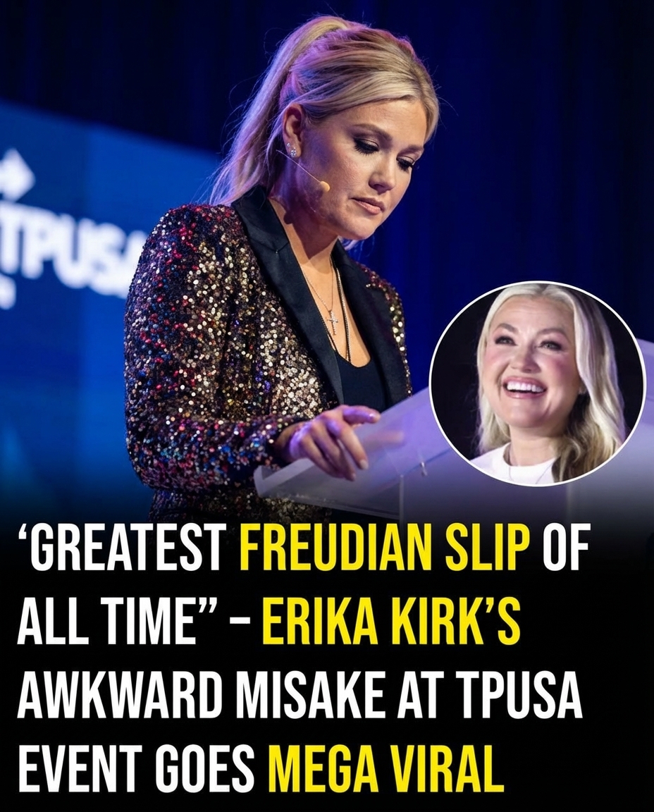 While speaking about perseverance and personal strength, Erika Kirk momentarily misspoke, using the wrong word before immediately correcting herself. She paused, acknowledged the error with a light tone, and explained that the long day had caught up with her. The response in the room was relaxed and forgiving, with laughter rippling through the audience as the speech continued without disruption. In person, the moment felt brief and human, hardly enough to derail the larger event.